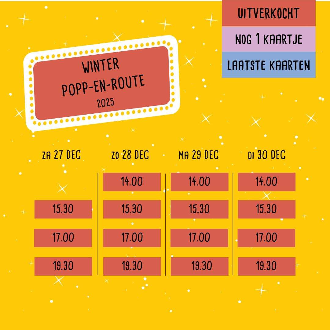 Geniet op de dagen tussen Kerst en Oud-en-Nieuw van de Winter-Popp-en-Route! Ontdek de sfeervolle wandelroute door Meppel en laat je onderweg verrassen door drie prachtige voorstellingen op drie bijzondere locaties.